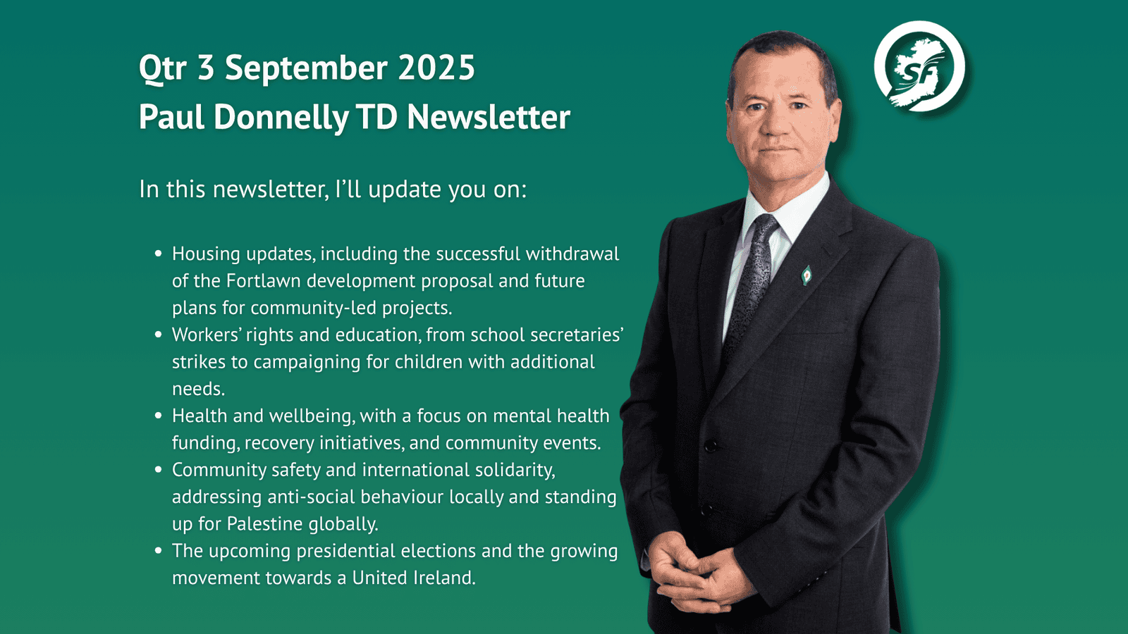 Irish Neutrality: I opposed government moves to abolish the Triple Lock, protecting Ireland’s neutrality in global affairs. Republican History: We honoured the 1981 hunger strikers and continued to campaign to protect the historic GPO quarter. These actions remind us of our commitment to justice and equality at home and abroad.